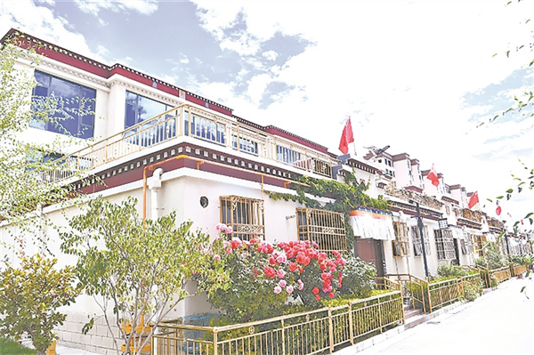 8月19日正午,拉薩市艷陽高照。毗鄰拉薩西站鐵路貨場的堆龍德慶區乃瓊鎮色瑪社區(以前為色瑪村),一排排藏式別墅規劃有序,一條條柏油馬路平整寬闊,家家戶戶的樓前國旗飄揚、鮮花盛放。
