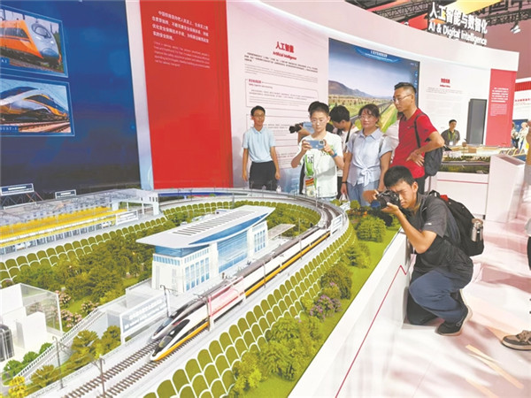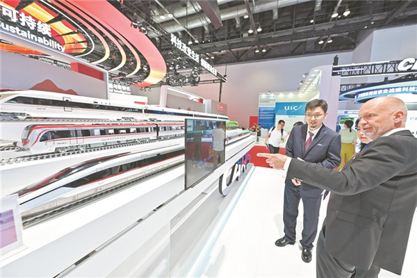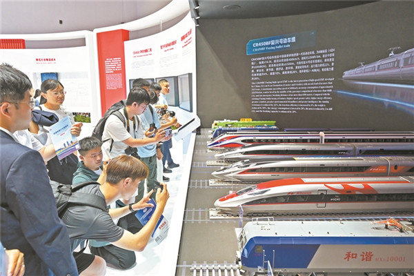 展臺(tái)上的CR450復(fù)興號(hào)動(dòng)車(chē)組模型十分亮眼。王 瑋 攝